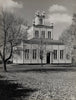 This photograph is included in the 1974 publication, Ontario Towns, a large-format book featuring 99 full-page black-and-white plates of buildings and vistas, each accompanied by a capsule description, and an introductory text that discusses the nature and development of buildings in the province. Greenhill's pictures are carefully and consistently composed portraits of buildings, generally taken from an angle yet strongly emphasizing the façade. The building customarily occupies the middle ground, leaving a provocatively inviting space between the observer and the structure.