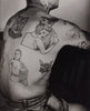 Vintage French police photo, Tattoos–man's back with couple, tiger, nude woman by Photographer Unknown