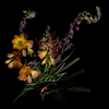• "Still Newfoundland is a series of 9 two-dimensional collages. I collected wild flora and foliage while hiking in Newfoundland and supplemented that material with bought flowers. I scanned the plants by putting them directly on a home office scanner, thereby digitized them at very high resolutions (1,600 pixels per inch). The shallow depth of field of the scanner renders the parts of the plants that are touching the glass in extreme detail but the imagery sharpness falls off quickly. By placing the flowers and foliage on a flat-bed scanner I can play with perspective. The resulting images have an unusual orientation that I could not obtain by taking a photograph of them. I then collage the digitized images together to create the compositions. Each image would be 6 feet square if it were printed out as intended. The files I’m working with are between 3 and 6 gigabits depending on how many layers they contain because they are so large and detailed.