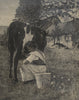 Untitled (portrait of a girl milking a cow) by Minna Keene